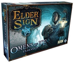 Venture into the far north and combat ancient American horrors in Omens of Ice, an expansion for the cooperative dice game Elder Sign. Deep in the Alaskan wilderness Ancient Ones are awakening whose diabolical forces cannot be fought within the safe confines of the Arkham Museum. You must brave the Tundra, solve the mysteries of native Inuit traditions, and make the treacherous ascent up the mountains of the Alaska Range. There, wild animals and monsters are far from the only dangers you'll encounter, for frostbite and starvation are among the Ancient Ones' deadliest weapons. Omens of Ice features a complete deck of sixty Alaskan Adventure cards. They open up locations across that frozen territory, where three new Ancient Ones threaten to awaken, and a new deck of Mythos cards makes midnight more terrifying than ever. For the first time in Elder Sign, the season matters as much as the time of day, and you can choose whether to take up your quest in the summer sun or, for a greater challenge, the winter dark. Eight additional investigators contribute their abilities to the struggle against evil, and new Allies, Spells, Common Items and Unique Items help you prevent the freezing of the entire Earth.