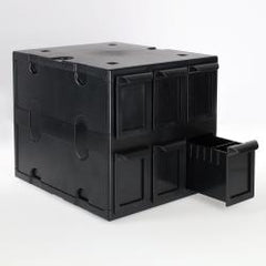 A sleek storage solution for large card collections. Made from a durable black plastic, each drawer features slots for movable Card Partitions.