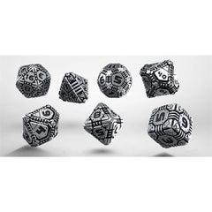 Set contains seven polyhedral dice, which includes 1xd4, 1xd6, 1xd8, 1xd10, 1xd10 percentile, 1xd12 and 1xd20.
