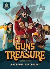 Each player secretly builds their ships by laying down 10 cards. Cards add guns, treasure or a bomb to your ships. The players then take turns marauding other players’ ships or retreating to safety. Marauding is the key to victory, since a successful attack means you score the treasure from both ships, but beware! Their ships may be well-equipped with guns or rigged with a bomb! The player with the most treasure wins.