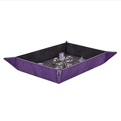 A safe and aesthetic space for rolling dice. These trays are no bigger than a sheet of paper (8.5 in. x 11 in.) when flat, and utilize small magnets in each corner to easily pop up walls to keep dice under control when rolling. Store your dice rolling tray easily in your backpack, character folio, binder, or favorite board game box. With one side a grey PU material, and the other featuring a soft suede leatherette in one of the Suede Collection's beautiful jewel tone colors, there is a dice rolling tray for every gamer.