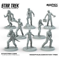 Bring the cast of the Next Generation to your tabletop! This box set contains 8 highly detailed, 32mm scale, resin miniatures of the crew of the U.S.S. Enterprise NCC 1701-D.