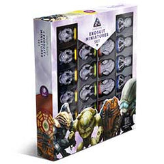 Features 24 highly detailed, 55 mm tall Exosuit miniatures, 6 for each Path, with player-colored base snaps and a plastic tray. These miniatures can be used to replace the hexagonal Exosuit tokens in the essential edition for the ultimate gaming experience. Each Exosuit miniature has a slot where you can place your piloting Worker, with its icon remaining visible while it’s on the board.